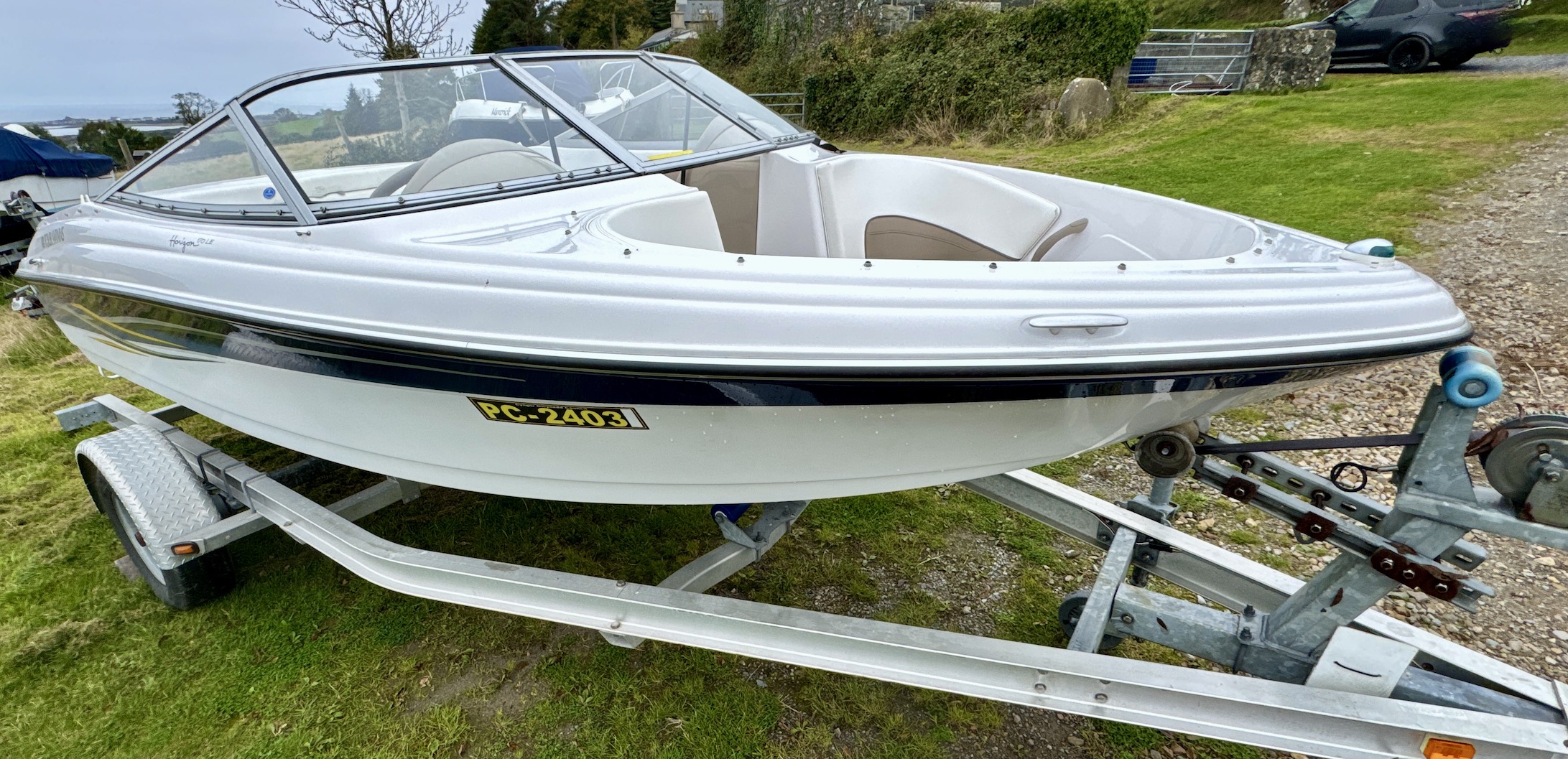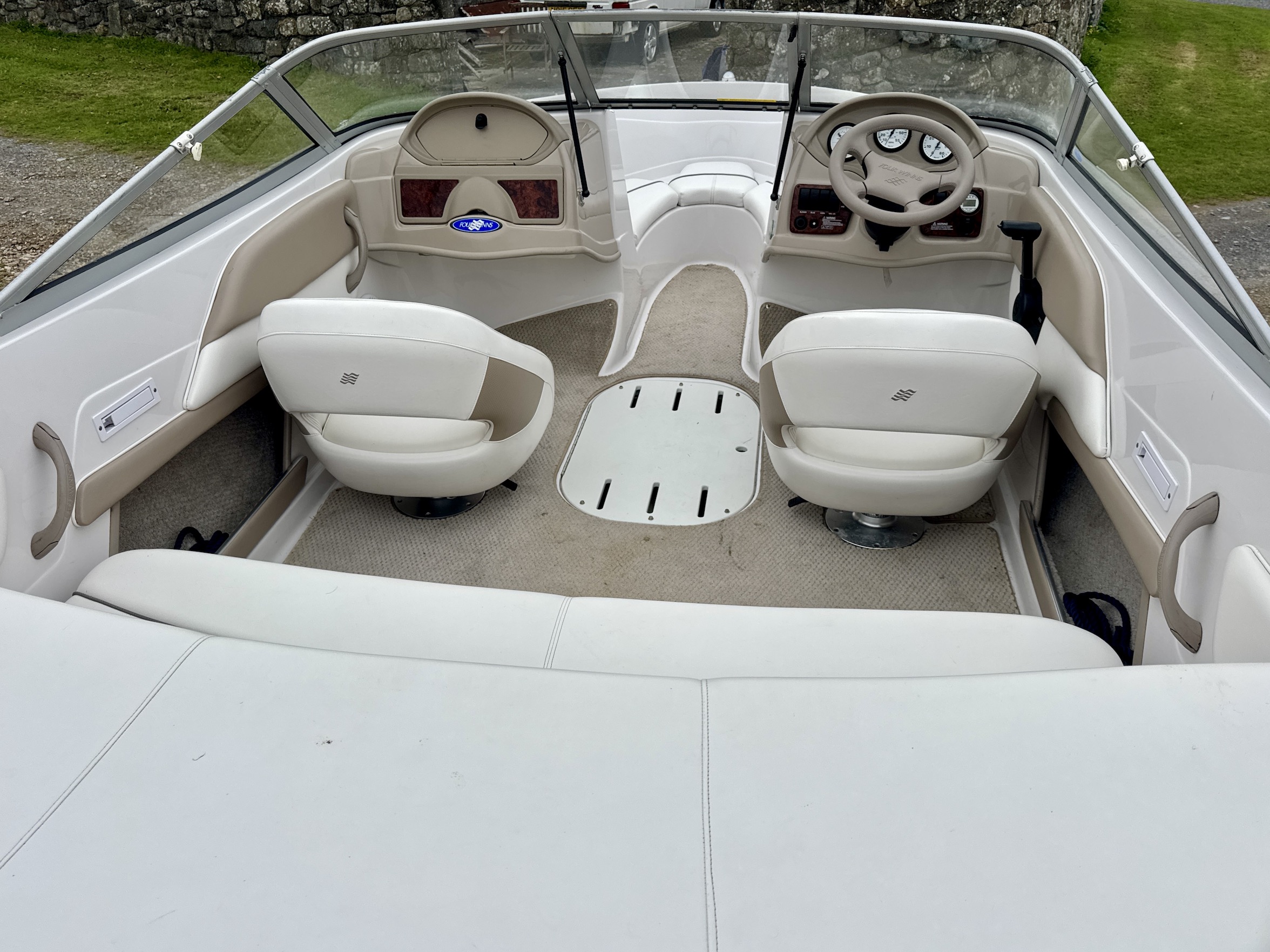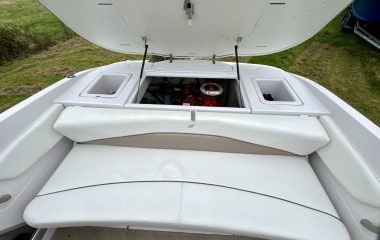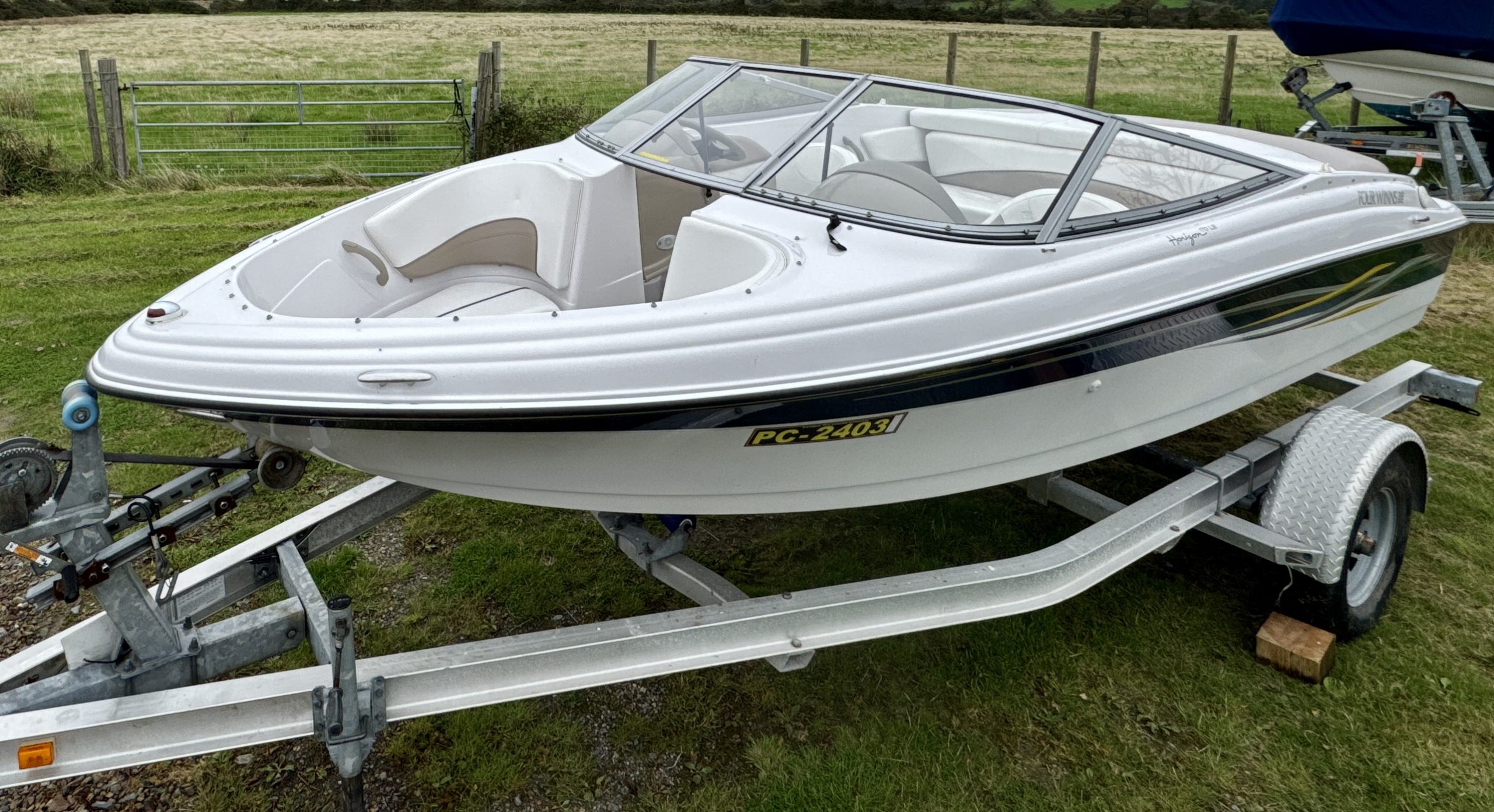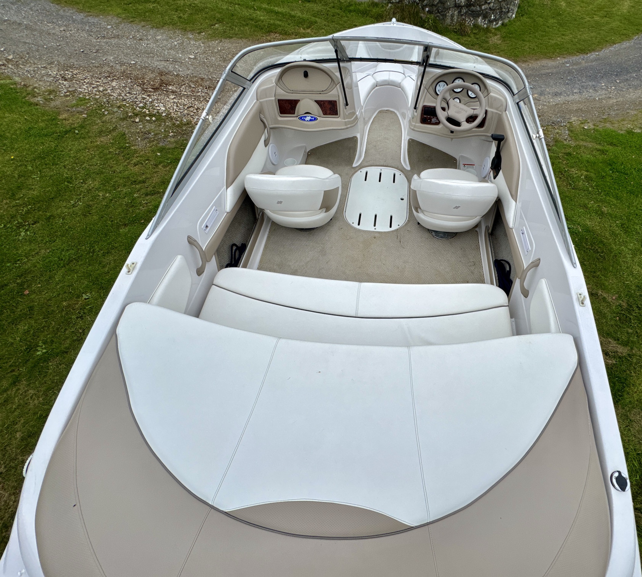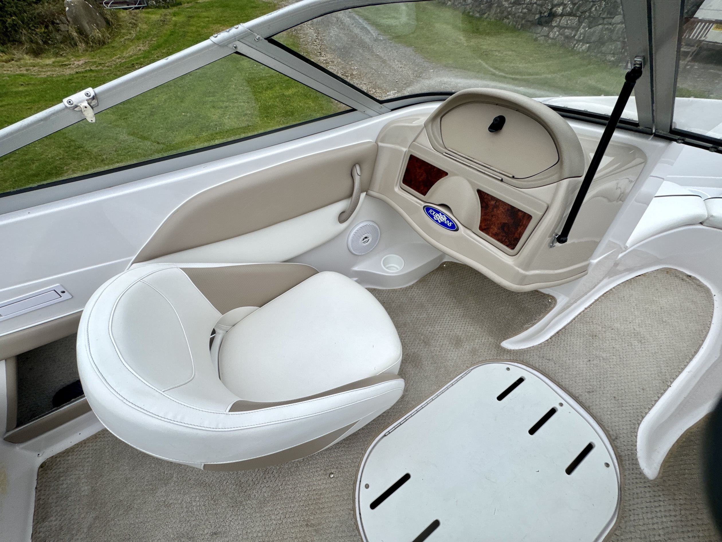 Presented in tidy condition throughout, this example has been well looked after and is complete with a quality aluminium launching trailer for effortless launching and recovery. The hull and gelcoat are in good order, the upholstery presents well for its age, and the engine has been regularly serviced and runs smoothly. With a stereo, clip-in carpets, and a full set of covers including a winter cover, it’s a ready-to-go package that’s perfect for anyone starting their boating journey.